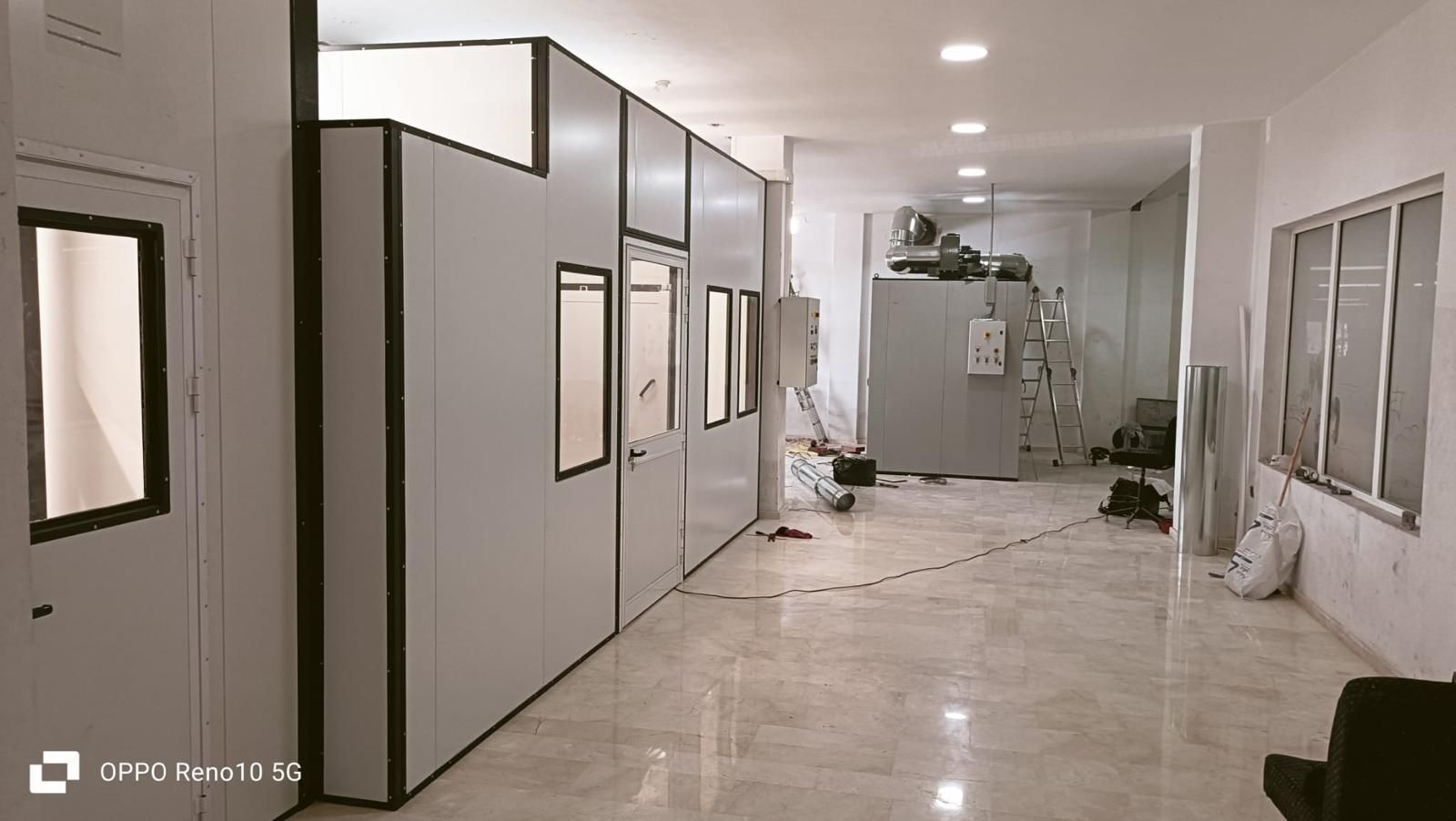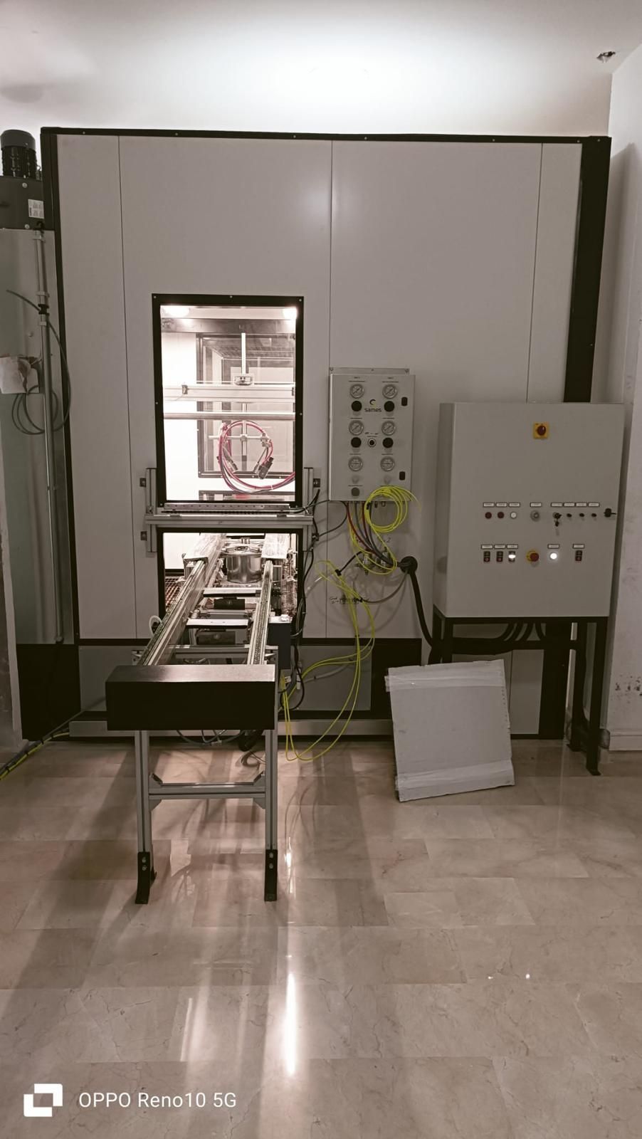 Un esempio è l’impianto realizzato a inizio 2024. L’esigenza del Cliente imponeva una linea semi automatica, con linea di trasporto a pavimento automatica, suddivisa da stazione (gestite da fine corsa)